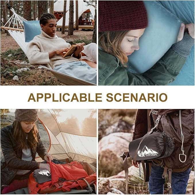 - 【Memory Foam Travel Pillow】Our premium travel camping pillow is fully adaptable to all kinds of trips, like camping, fishing, backpacking, hiking, beach, festival, or other outdoor activities. Whether you're sleeping on a hammock, a plane, a beach, in a car, RV, or under a tent, hotel for a "Power Nap" in the office or on the couch, our travel pillow will give you a great night's sleep wherever you lay your head.