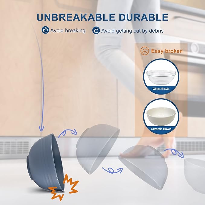 - 【Multicolor with 26 Oz Capacity】: These bowls come in a variety of vibrant colors and have a 26 oz capacity. They are deep enough for breakfast dishes like milk with corn flakes and also perfect for serving salads, fruits, rice, and noodles without any spillage. Enjoy your everyday meals at home or outdoors.