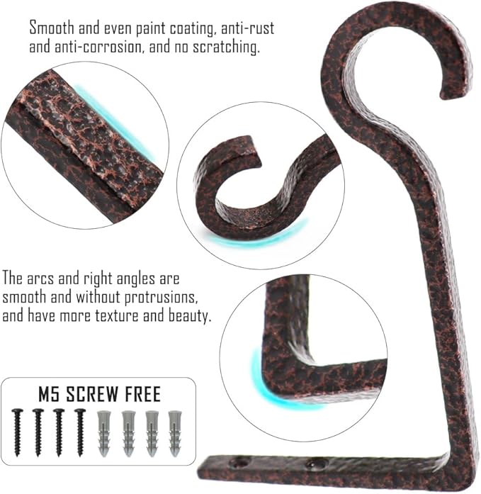 - ?�EASY TO INSTALL?‘This package includes 2 plant hooks, 4 screws and 4 wall anchors. Each screw is a standard M5 screw, 1.2 inches long. All you have to do is screw the screws into the wooden fence posts, deck posts and even the interior walls. It looks great in a variety of different environments.