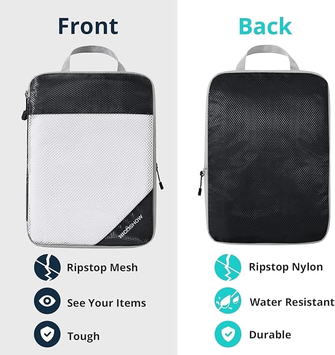- Maximize Luggage Space: With NICOSHOW compression packing cubes, you can pack smarter and fit more into your luggage. Our two-zipper system packing cube can compress clothes and save up to 60% of space