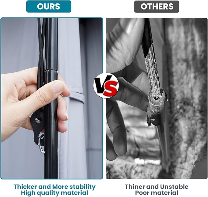 - MORE SAFETY & STABILITY:This shower tent use high quality anti-rust iron poles, it's stronger and more stable than ordinary poles. The ropes of tent and piles ensure safety and stability, perfect for camping, seaside, hiking, picnic and fishing