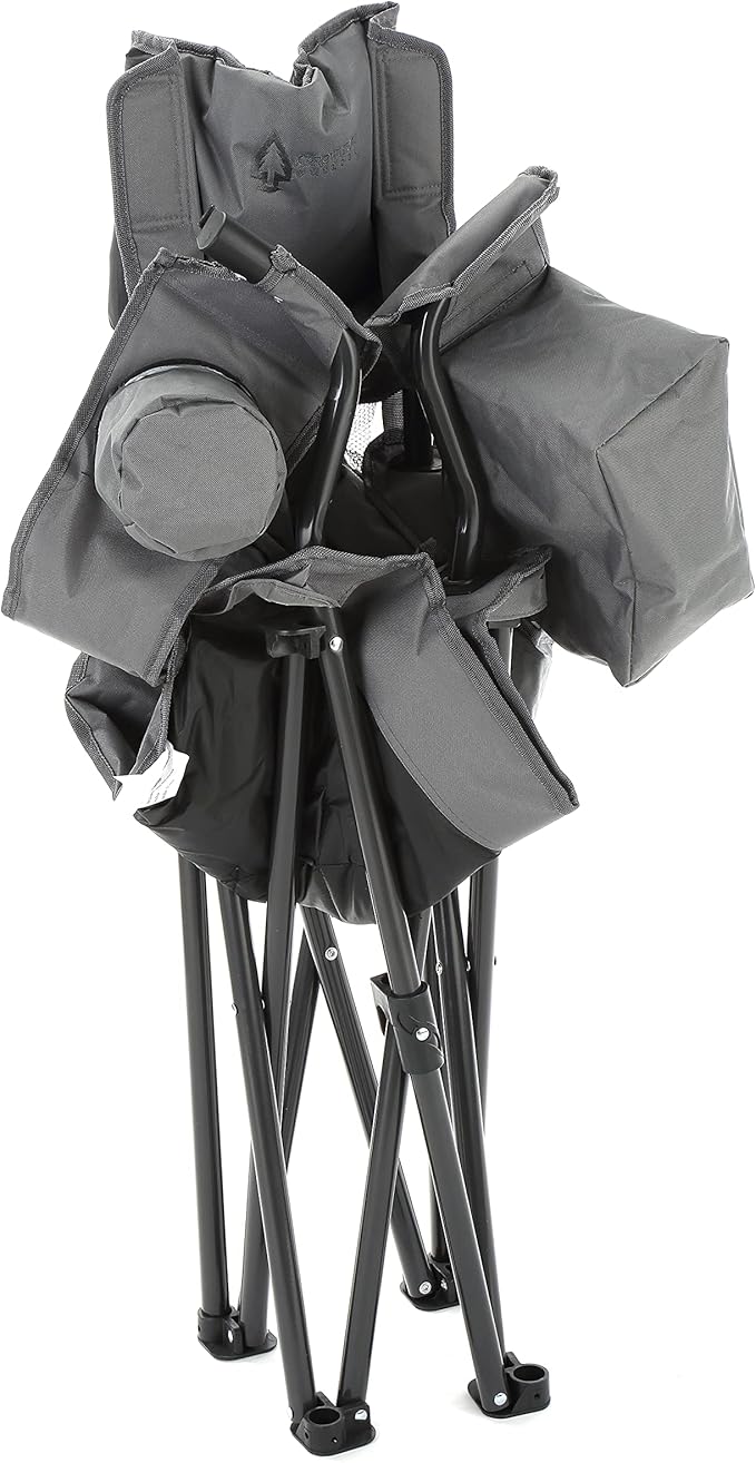 ARROWHEAD OUTDOOR Portable Folding Camping Quad Chair w/ 6-Can Cooler, Cup & Wine Glass Holders, Heavy-Duty Carrying Bag, Padded Armrests, Headrest & Seat, Supports up to 550lbs, USA-Based Support