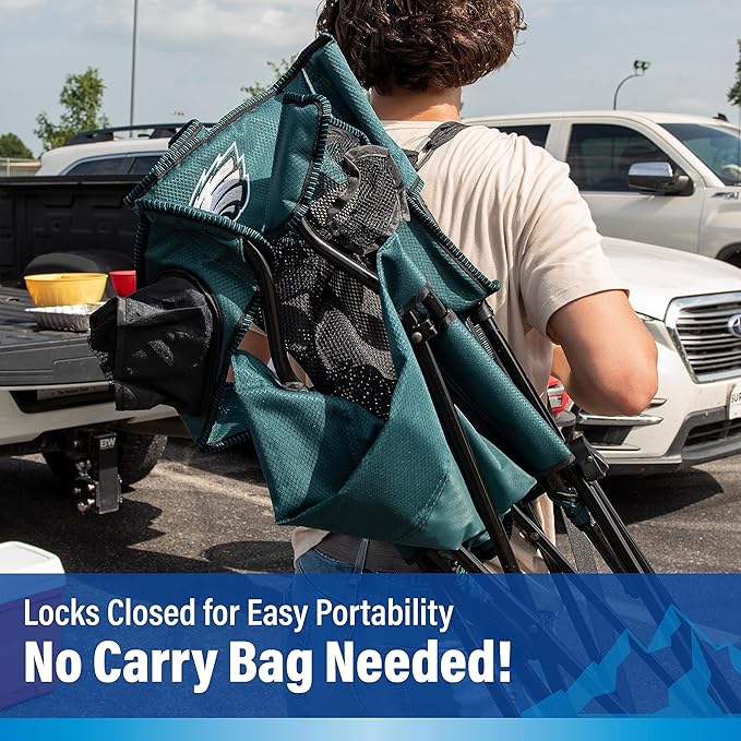 Kijaro Sports Fan Folding Chair, 26" L x 35.5" W x 37" H, Philadelphia Eagles