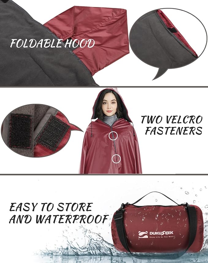 - β π¦π§ππππ¨π ππππ‘πππ§ πͺππ§π π¨π‘ππ€π¨π ππ’π’πππ πππ¦πππ‘οΌThe DUKUSEEK outdoor waterproof stadium blanket for cold weather has an adjustable hood, which can be easily unfolded and converted into a poncho and cloak in rainy days. And it comes with a stuff sack for easy carrying and storage.
