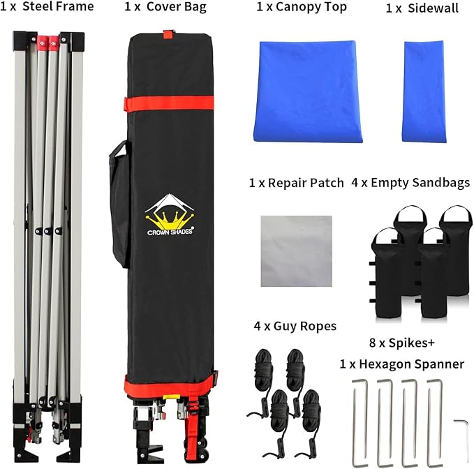 - FAST CLIP CANOPY FABRIC - Our innovative clip system quickly secures the canopy to the frame.The silver-coated interior offers UPF 50+ protection for a cooler, safer shade. Durable 150D fabric makes the tent water and flame-resistant (CPAI-84). The Fast Clip system prevent wind lift and rain pooling, reducing fabric tearing risks. The included 150D sidewall adds side sun protection. Perfect for outdoor events, this design ensures easy setup and durability