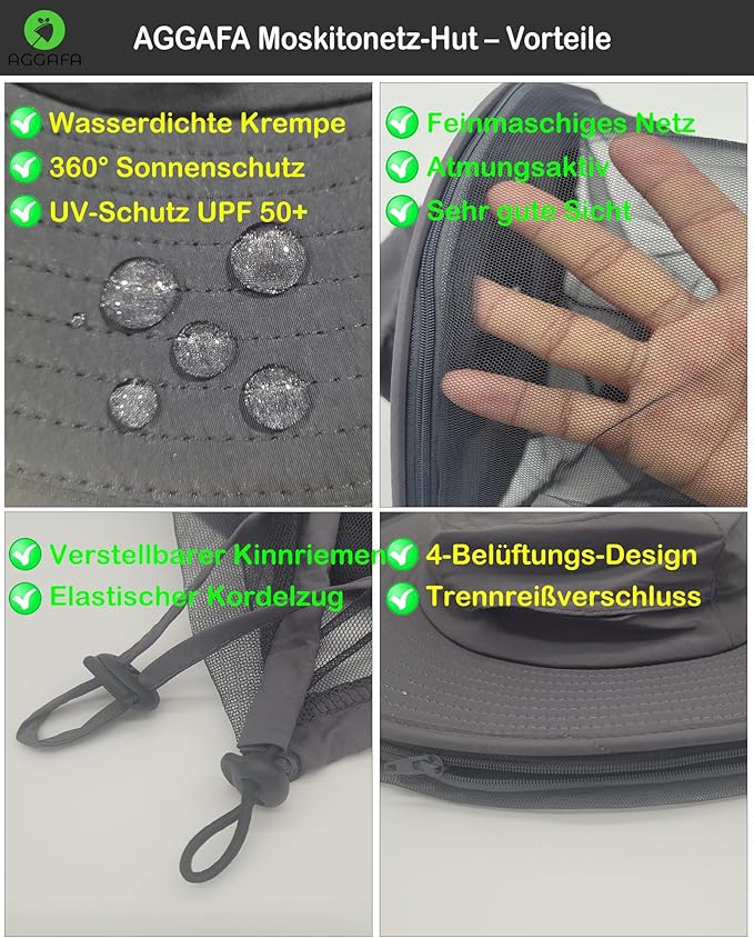 - The Best Gift in Summer: Make outdoor activities more enjoyable in hot summer weather with AGGAFA Mosquito head net hat. Designed to help reduce the likelihood of mosquito, fly, and bug contact with your face and neck, they make for the perfect gift for anyone who loves spending time outdoors.