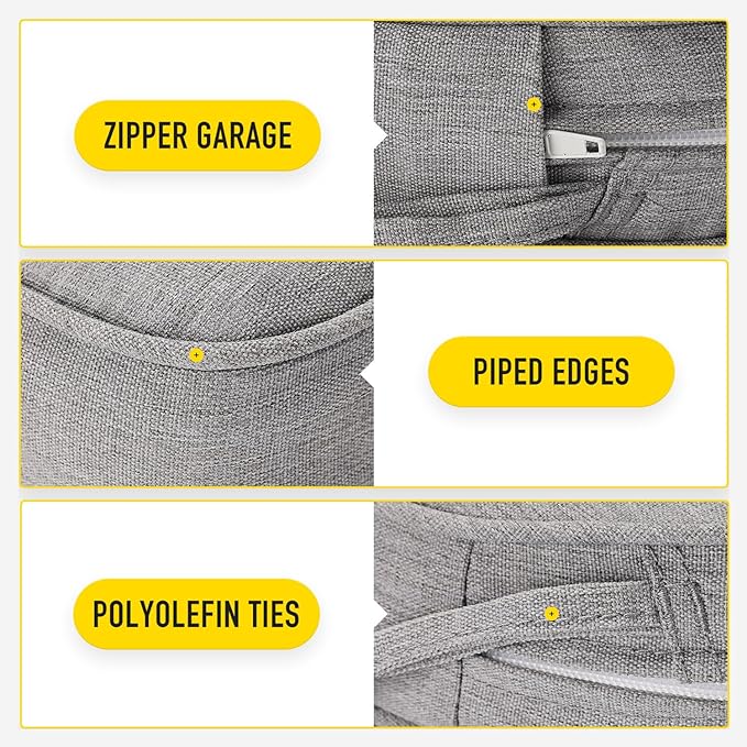 - 【Invisible Zipper Garage | Removable Cover with Ties】Zippers lock to keep a tight closure, stored in protective garages to prevent scratching your patio furniture when closed and offer a seamless look. Removable cover with non slip ties, customizable fit to keep your cushion where you want it.
