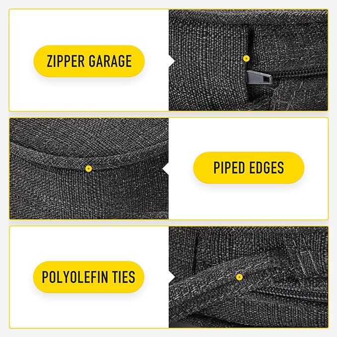 - 【Invisible Zipper Garage | Removable Cover with Ties】Zippers lock to keep a tight closure, stored in protective garages to prevent scratching your patio furniture when closed and offer a seamless look. Removable cover with non slip ties, customizable fit to keep your cushion where you want it.