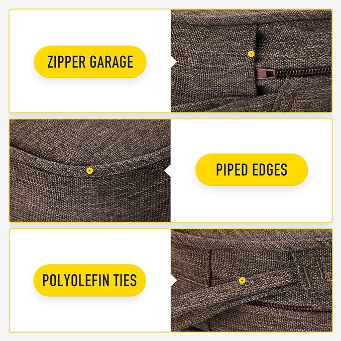 - 【Invisible Zipper Garage | Removable Cover with Ties】Zippers lock to keep a tight closure, stored in protective garages to prevent scratching your patio furniture when closed and offer a seamless look. Removable cover with non slip ties, customizable fit to keep your cushion where you want it.