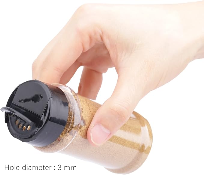 - Capacity: The capacity of these plastic spice bottles is 3 oz/90ml, height 4", bottom diameter 1.7"
