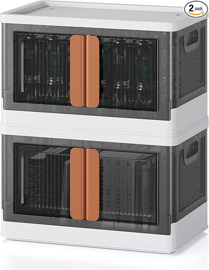 8.4Gal Collapsible Storage Bins with Lids & Wheels - 2 Pack Stackable with Doors, Heavy-Duty Plastic Containers for Home/Office, White