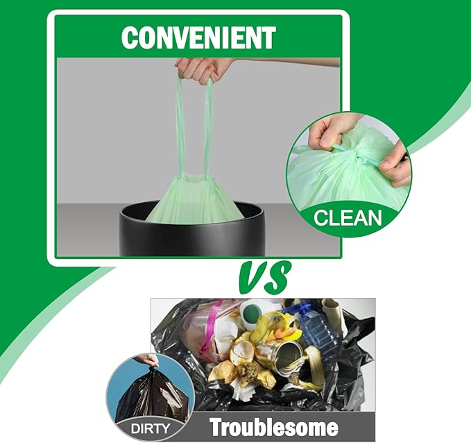 - Biodegradable Trash Bags: These small medium Large garbage bags made from entirely materials such as corn starch and plant-based, our biodegradable garbage bags will degrade to CO2, water and organic biomass after 6-12 months.