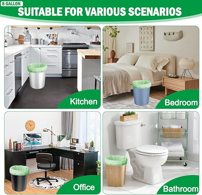 - Biodegradable Trash Bags: These small medium Large garbage bags made from entirely materials such as corn starch and plant-based, our biodegradable garbage bags will degrade to CO2, water and organic biomass after 6-12 months.