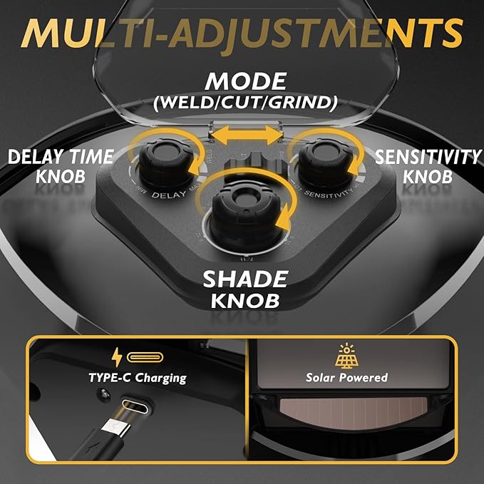 - Multi-function:External sensitivity,delay,shade control knob,meet different welding needs.You can switch the function key to WELD/CUT/GRIND according to actual situation