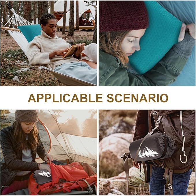 - 【Easy to Carry Travel Pillow】Our premium travel pillow is fully adaptable to all kinds of trips, like traveling, camping, fishing, backpacking, hiking, beach, festival, or other outdoor activities. Whether you're sleeping on a plane, a hammock, a beach, in a car, RV, or under a tent, hotel for a "Power Nap" in the office or on the couch, our travel pillow will give you a great night's sleep wherever you lay your head.