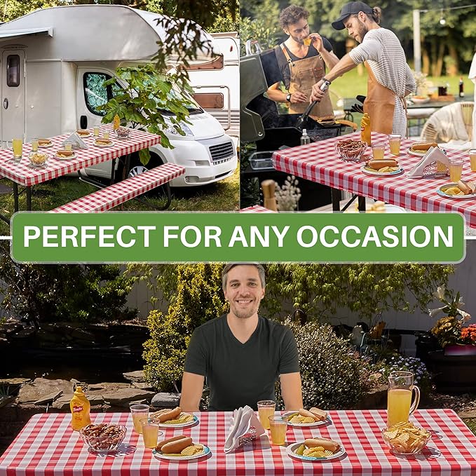 - Waterproof and Windproof: Unlike similar products on the market, this camping picnic table cover rectangle is waterproof, spill-proof and windproof, being easy to put on without requiring extra clips or tape.