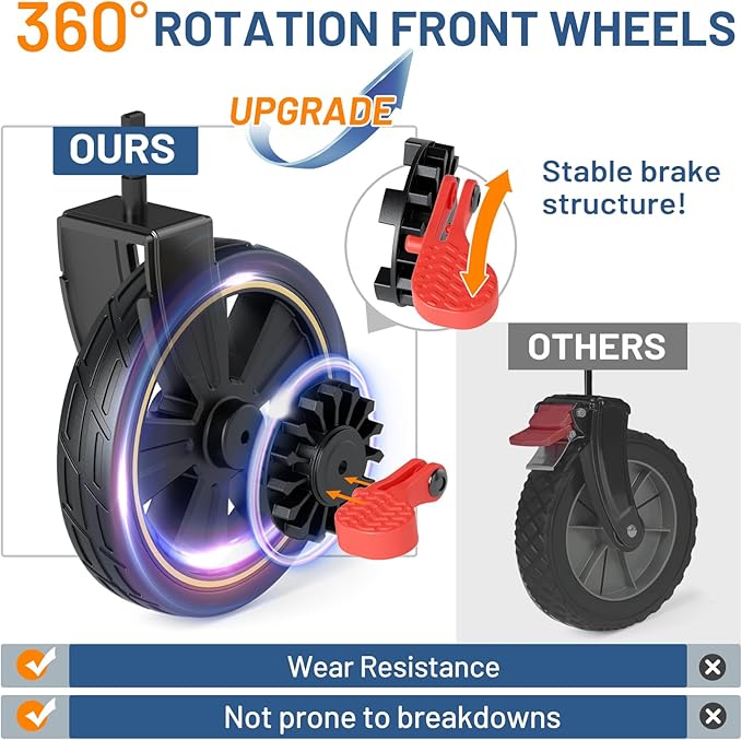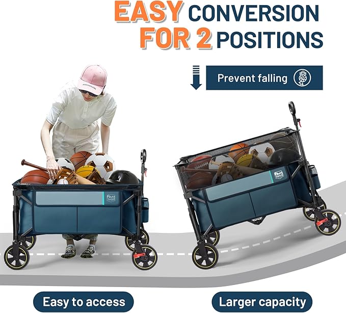 - PUSH&PULL: This folding wagon offers ample hauling capacity; adjustable handle for customized height; 360° swivel front wheels for easy steering and maneuvering