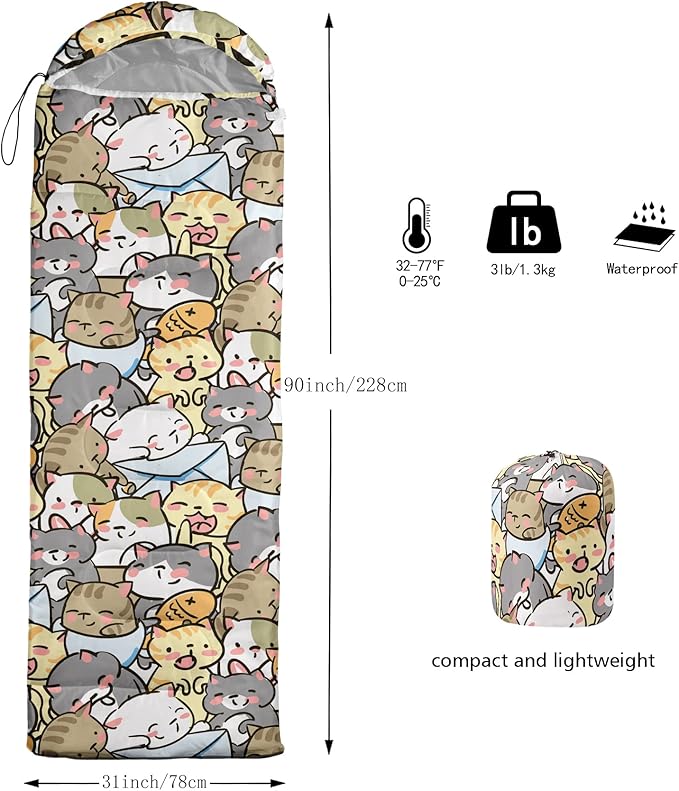 - 【Fits For 3 Seasons】: Size - 31 by 90 inches (W x D). Our sleeping bag can be used in 3 seasons with a design temperature of 32℉-77℉(0℃-32℃). These bags also have a weather resistant waterproof design to keep you warm and prevent you from any dampness.