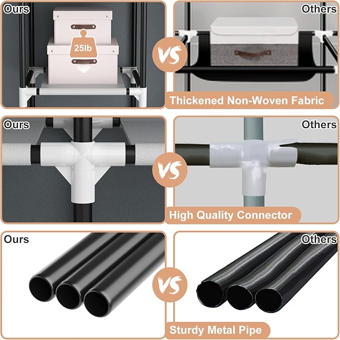 - [Sturdy Portable Wardrobe] This portable covered clothes rack is made of high-quality waterproof non-woven fabric cover, reinforced anti-rust steel pipe and thickened PP plastic connectors, portable wardrobe closet the metal frame is stable, not easy to bend, able to support heavier weight, and can be used for many years, to meet your long-term storage needs.