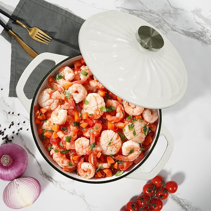 - CLASSIC DESIGN: The round cast iron dutch oven comes with sturdy dual handles and lid, which are ergonomically designed to allow you to easy to carry and move the pot