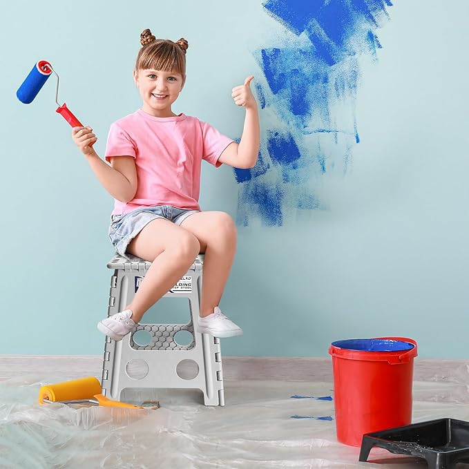 - Loads Up to 400lbs : The internal structural design 16 inch Folding Stool in Grey is unique makes the step stool strong and safe. It can hold up to 400 lbs Max !!! Which is mainly used for adults indoor sitting. Please make sure the step stool is fully opened before use