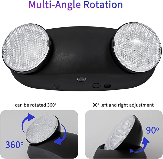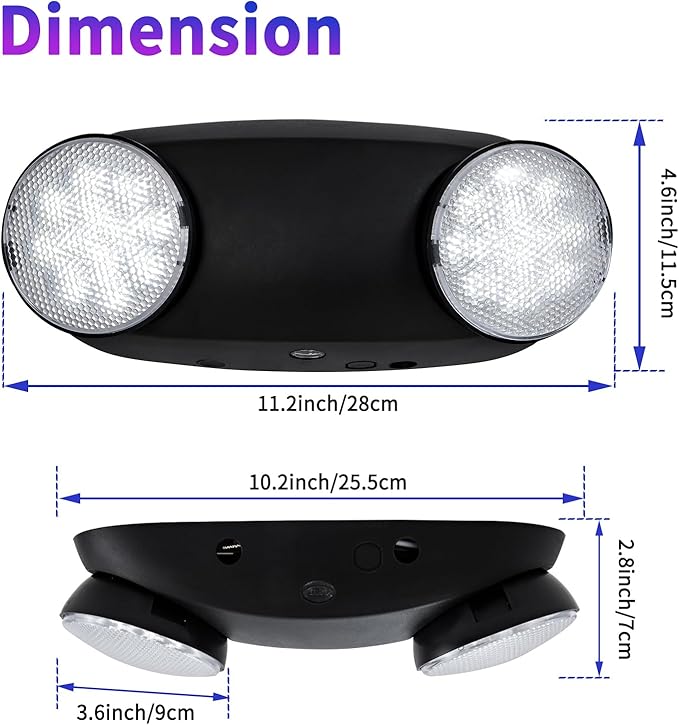 - 【US STANDARD】The emergency light is made of injection-molded thermoplastic ABS shell, UL-94V-0 flame retardant, so that the emergency lights with battery backup can continue to operate in the event of a fire or earthquake. Each adjustable lamp head is equipped with super bright LED lights to illuminate every corner in the dark.