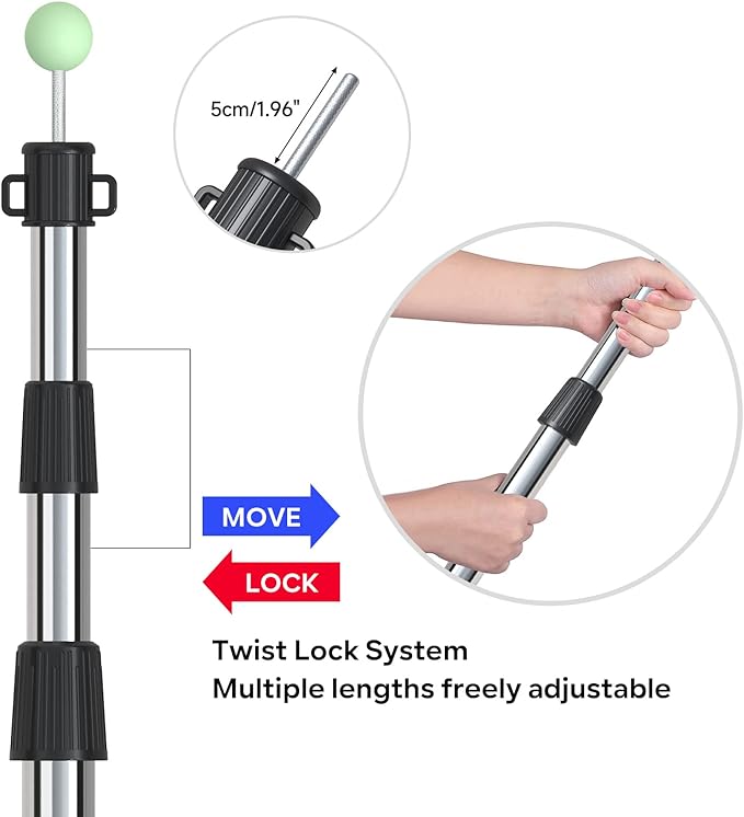- 【Free Adjustment Design】3 sections adjustable tent poles can be extended from 34.6 inches/3 Feet to 86.6 inches/7.2 Feet in length. It is easily adjust to any length between compact size and extendable size. Rotate to the left to lock the length, rotate to the right to unlock.
