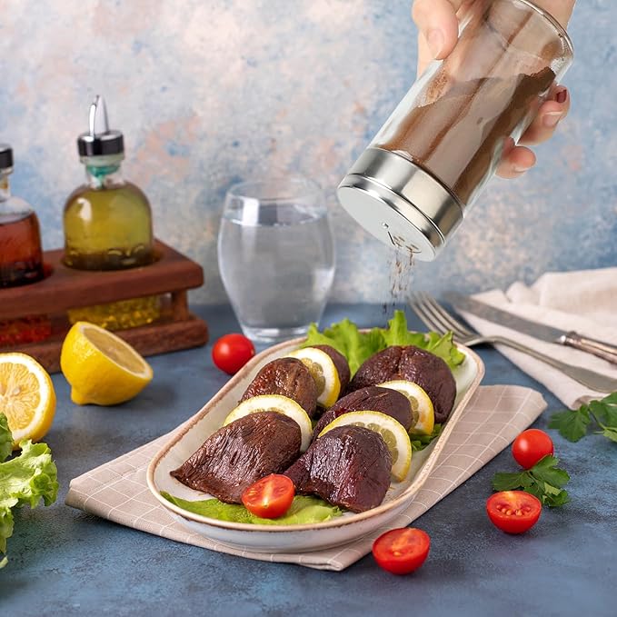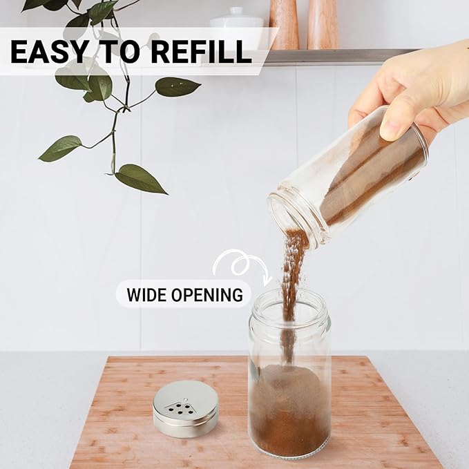 - Multi-Purpose Spice Bottles for a Variety of Seasonings: Our spice jars are designed to be versatile and accommodate different types of seasonings. Whether you're storing salt, pepper, herbs, cumin powder, or other spices, these multi-purpose jars can effortlessly hold and dispense different seasoning options. Simplify your kitchen organization with a single jar that suits a wide range of spices.