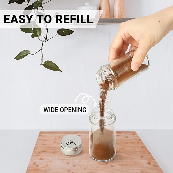 - Multi-Purpose Spice Bottles for a Variety of Seasonings: Our spice jars are designed to be versatile and accommodate different types of seasonings. Whether you're storing salt, pepper, herbs, cumin powder, or other spices, these multi-purpose jars can effortlessly hold and dispense different seasoning options. Simplify your kitchen organization with a single jar that suits a wide range of spices.