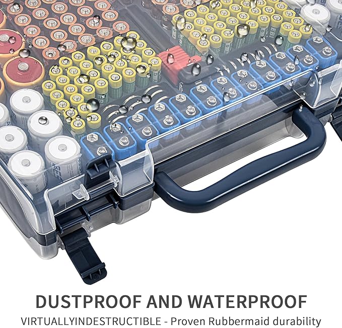 - Well-designed battery drawer organizer - High-quality plastic material, waterproof and shockproof, strong and durable battery rack can effectively bear the weight of full battery. The hinges on the lid is not easy to damage and four tight latches easy to open and close. Smooth Edge of the battery container does not hurt hands.