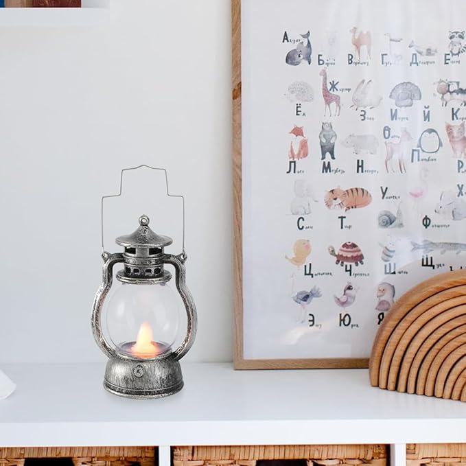 Small Vintage Camping Hanging Lantern , 4inch LED Vintage Lantern Metal, Water and Impact-Resistant Camping lightswith Carry Handle Light Study Room Bedroom 4.92 Inch