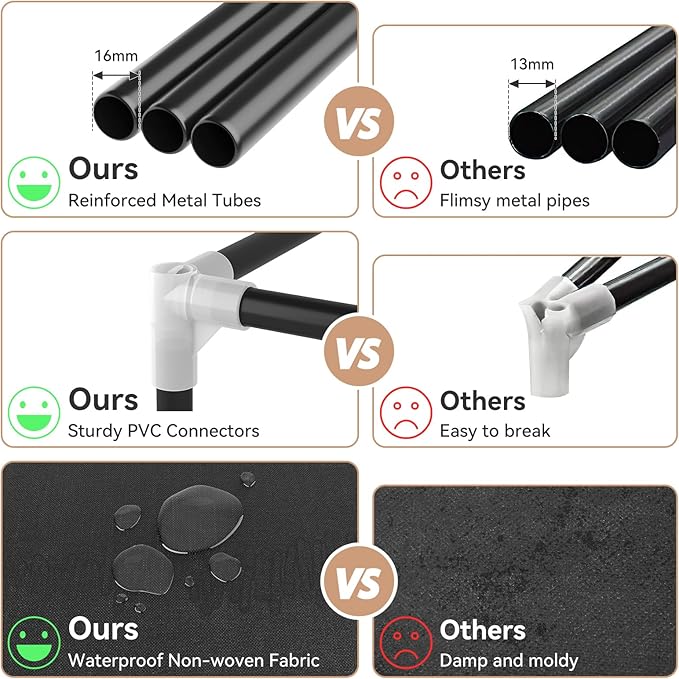 - ASSEMBLY WAS A BREEZE: The wardrobe storage closet comes with detailed installation instructions. No extra tools are needed. Just assemble the metal rod and plastic joint correctly according to the manual (Please ensure that the connection is in place). In addition, for your easy and quick installation, we have prepared a detailed installation video for your reference. (Behind the product pictures)