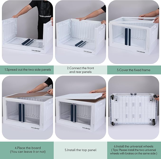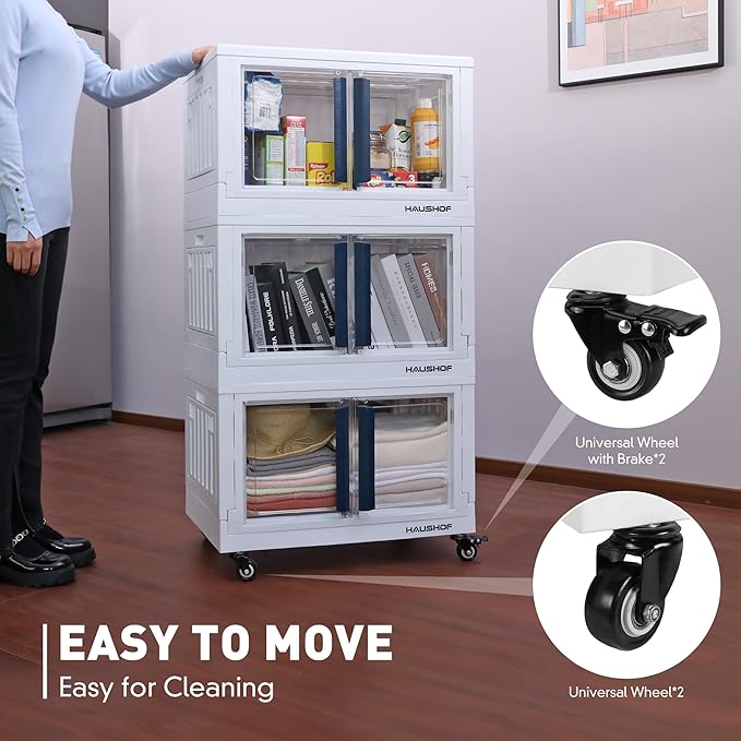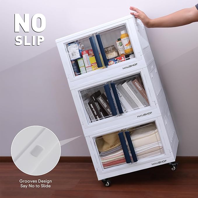 - Stackable Closet Organizers: HAUSHOF storage bins are made of high quality PP and easy to install. It is stackable, and with the grooves design, you never worry about the bins falling down. It can be easily folded away when not in use, saving space