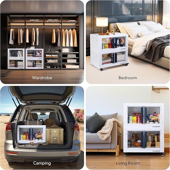 - Multifunctional Storage Bins: HAUSHOF storage box with Lid is a versatile storage bin. It can be used to store clothes, linens, snacks, drinks, cans, tools or any accessories for organizing your closet, living room, bedroom, bathroom, kitchen, car. Also, the storage bin can be your outdoor essentials when camping, you can use it to carry camping supplies, use it as a chopping board or a table