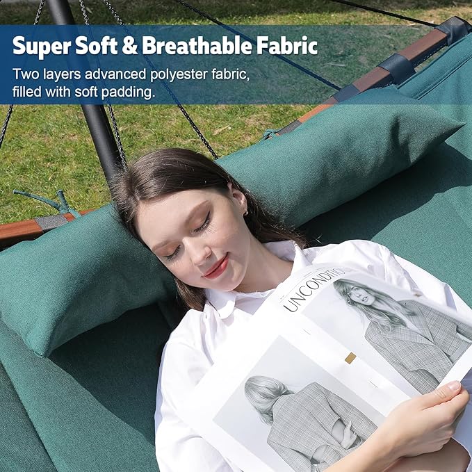 - ★Premium Weather-Resistant Polyester Fabric: Two-layer quilted fabric hammock, filled with soft padding. Resting on our hammock for a moment feel like laying on the cloud. After strict selection, we use a kind of premium polyester fabric for our hammock which has better color fastness and brings you more comfortable feeling.