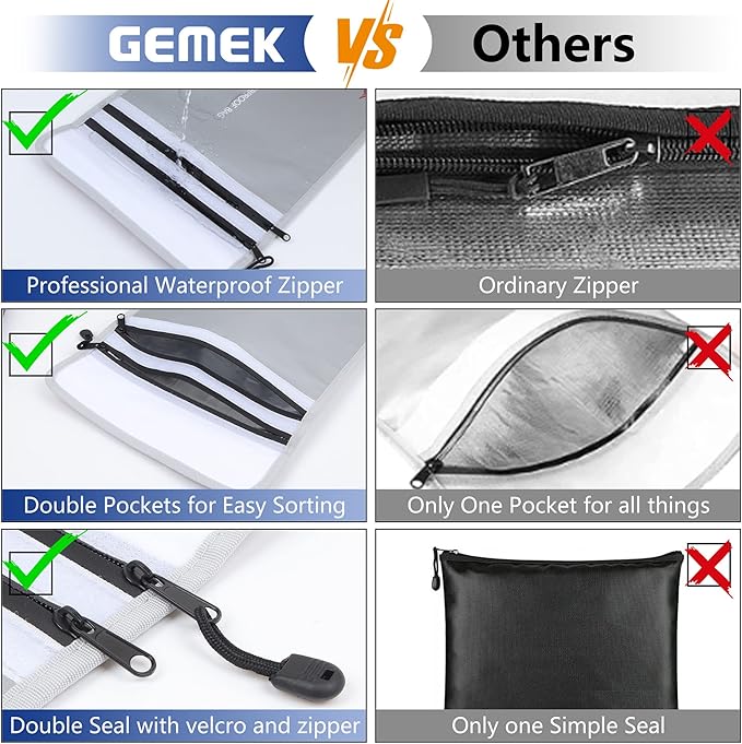 - Additional Protection Always Great Idea: GEMEK fireproof document bag offers you important documents, cash, passport and other valuables an additional protection in the event of a fire, bringing you a peace of mind.