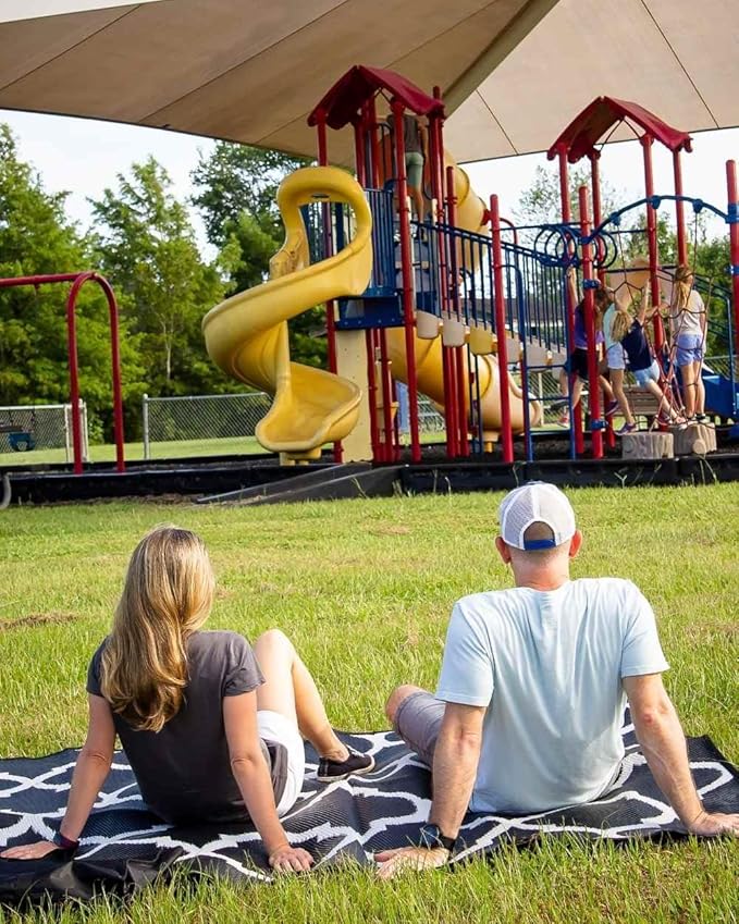 5x7 Black Lattice RV Mat – Extra Thick 5mm Recycled Poly Rug – Heavy-Duty, Waterproof, Reversible – Stylish Luxury Outdoor Rug for Camping, Beach (Black Lattice NO Carry Bag, 5'x7')