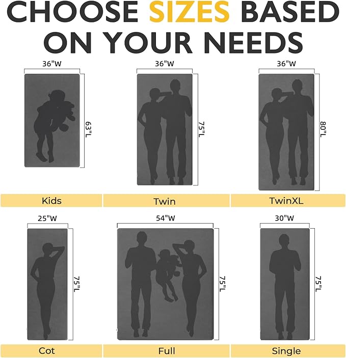 - MULTIFUNCTIONAL FOLDABLE MATTRESS: Kingfun camping mat is the ideal solution for temporary sleeping accommodation. Whether it is for guests staying, camping, traveling, yoga, car, truck, Kingfun floor bed is your ideal choice.
