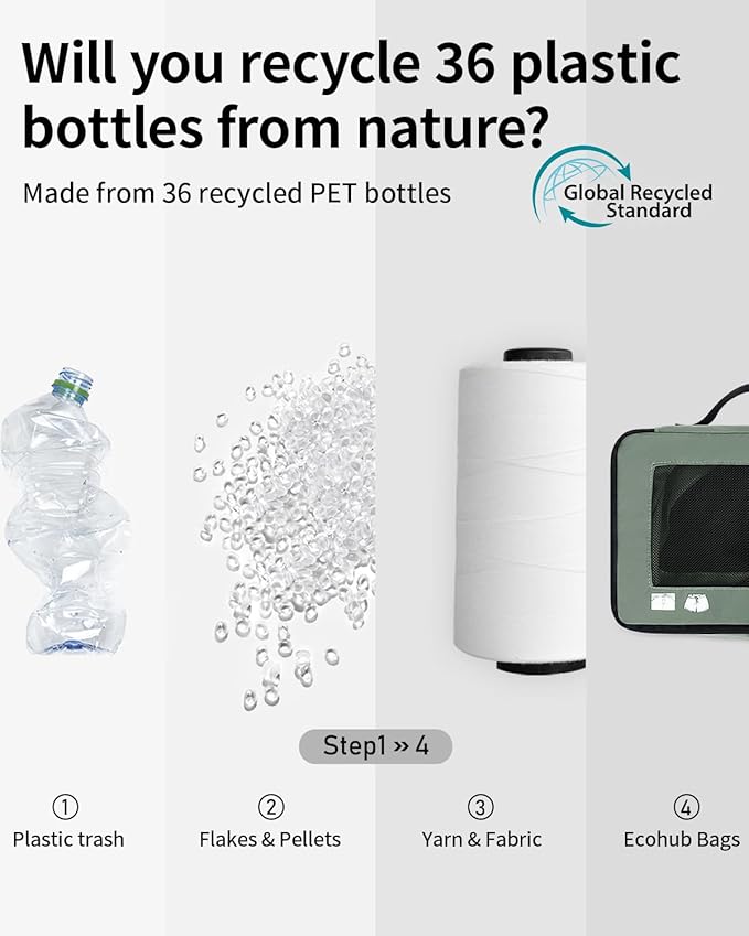 - 【Sustainable and guarantee】: ECOHUB travel packing cubes are made from at least 50% recycled materials, with fabric and lining crafted from 36 recycled PET plastic bottles. The lightweight fabric combined with YKK zippers and reinforced ripstop stitching, ensure durability for any adventure. If you have any concerns, reach out through your order. (Patent Pending)