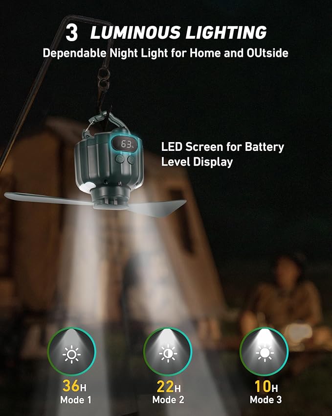 - β π₯ππ π’π§π ππ’π‘π§π₯π’π & π§ππ ππ‘π π π’ππ - The tent fan with light and hanging hook can be easily controlled through the remote controller or manually. There is also a timer shutdown function to save energy. Due to the compact size, this tiny portable tent fan is perfect to use for 2-3 person tents.