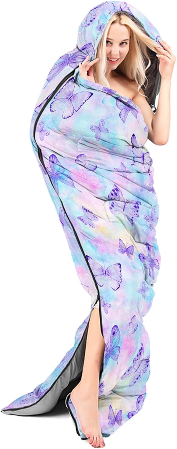 - 🌈【Fashion Design】SIZE - 31 by 90 inches (W x D). Our sleeping bag can be used in 3 seasons with a design temperature of 32℉-77℉(0℃-25℃). These bags also have a weather resistant waterproof design to keep you warm and prevent you from any dampness.