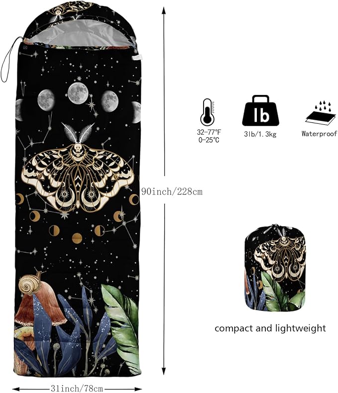 - 🌈【Fashion Design】SIZE - 31 by 90 inches (W x D). Our sleeping bag can be used in 3 seasons with a design temperature of 32℉-77℉(0℃-25℃). These bags also have a weather resistant waterproof design to keep you warm and prevent you from any dampness.