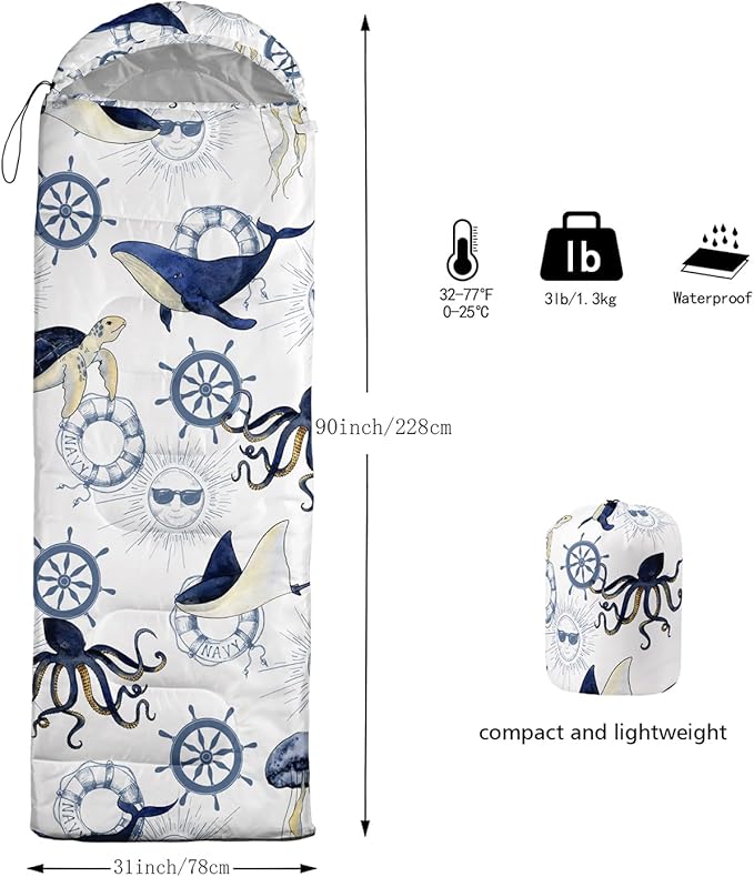 - 🌈【Fashion Design】SIZE - 31 by 90 inches (W x D). Our sleeping bag can be used in 3 seasons with a design temperature of 32℉-77℉(0℃-25℃). These bags also have a weather resistant waterproof design to keep you warm and prevent you from any dampness.