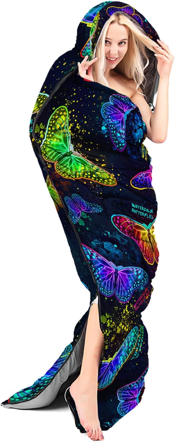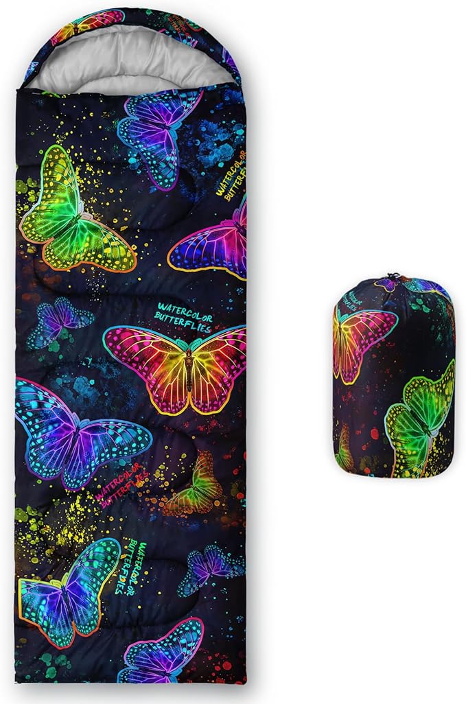 - 🌈【Fashion Design】SIZE - 31 by 90 inches (W x D). Our sleeping bag can be used in 3 seasons with a design temperature of 32℉-77℉(0℃-25℃). These bags also have a weather resistant waterproof design to keep you warm and prevent you from any dampness.