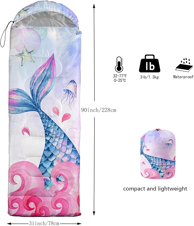 - 【Fits For 3 Seasons】: Size - 31 by 90 inches (W x D). Our sleeping bag can be used in 3 seasons with a design temperature of 32℉-77℉(0℃-32℃). These bags also have a weather resistant waterproof design to keep you warm and prevent you from any dampness.