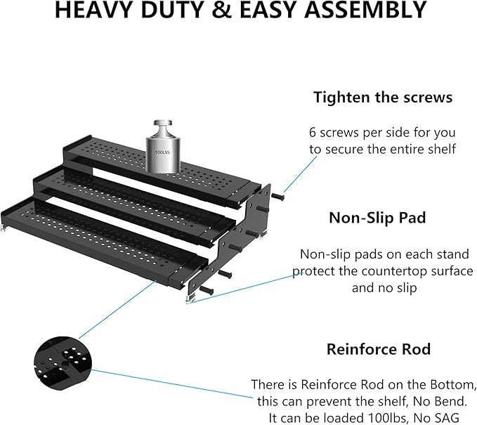 - ⭐[Stepped design]The 3-tier spice rack with stepped design to make it easy to find the seasoning,pepper,sauces while cooking. Designed to provide you with both space and visibility. You can easily access any spices you need without being obscured.
