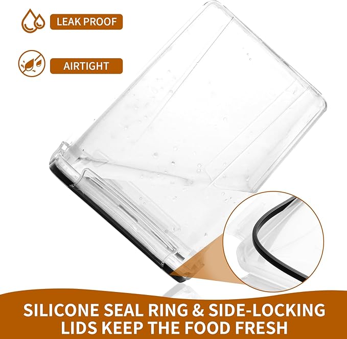 - Sealing Safe: These flour and sugar containers are equipped with a silicone sealing strip and four locking lids to ensure leak proof and better preserve food freshness. The plastic storage containers with lids are user-friendly and have an easy to clean surface for your daily care