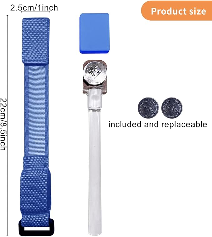 - It is powered by 2 CR2032 batteries, which are included and pre-installed. The batteries are replaceable, and the nylon wristband can be cleaned by removing the battery pack, making it reusable.