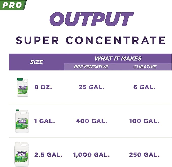 - 3-IN-1 GARDEN SPRAY - Earth’s Ally Pro 3-in-1 Plant Spray Super Concentrate is an insecticide, miticide and fungicide. The formula effectively controls soft - bodied insects and common plant diseases with a synergistic blend of botanical oils.