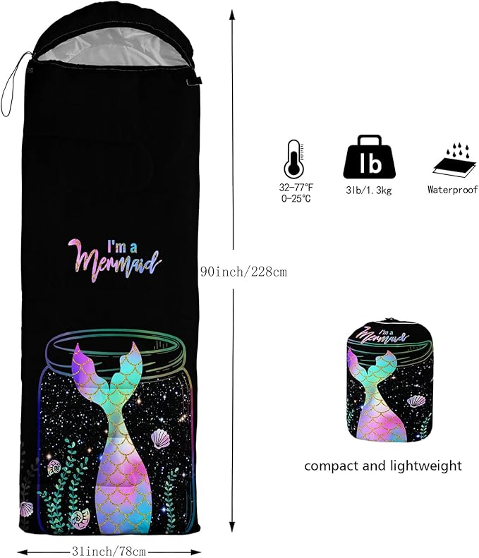 - FITS FOR 3 SEASONS: SIZE - 31 by 90 inches (W x D). Our sleeping bag can be used in 3 seasons with a design temperature of 32℉-77℉(0℃-25℃). These bags also have a weather resistant waterproof design to keep you warm and prevent you from any dampness.